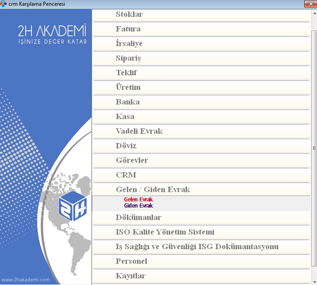Karşılama pencerisinden Gelen/Giden Evrak modülünü tıklayınız.Daha sonra Gelen yada giden evrak a tıklayınız.